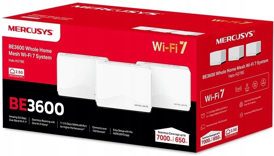 Маршрутизатор MERCUSYS Halo H27BE представляет собой двухдиапазонную 7-ячеистую систему Wi-Fi, которая обеспечивает скорость до 3,6 Гбит/с и идеально подходит для плавной потоковой передачи 4K/8K, игр AR/VR и быстрой передачи файлов. В устройстве используется технология Wi-Fi 7, включая TY, которая гарантирует исключительную производительность и меньшую задержку. ys создает единую сеть с бесшовным роумингом и устраняет мертвые зоны на площади до 650 м² (1000 м²). Каждый блок имеет один порт 2,5 Гбит/с и два гигабитных порта с автоматическими переключателями. Система может поддерживать более 150 устройств, а настройка осуществляется с помощью интуитивно понятного приложения MERCUSYS.