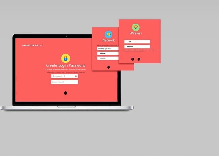 Чтобы настроить двухдиапазонный маршрутизатор Mercusys AC12, просто следуйте пошаговым инструкциям на веб-сайте. Вам понадобится всего несколько минут! 1 – Создайте уникальный пароль. 2 - Выберите интернет-услугу и введите необходимую информацию. 3. Установите имя беспроводной сети (SSID) и пароль.