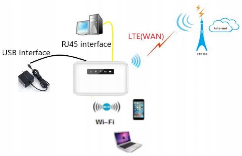 - Портативный маршрутизатор 4G с Wi-Fi и разъемом RJ45.