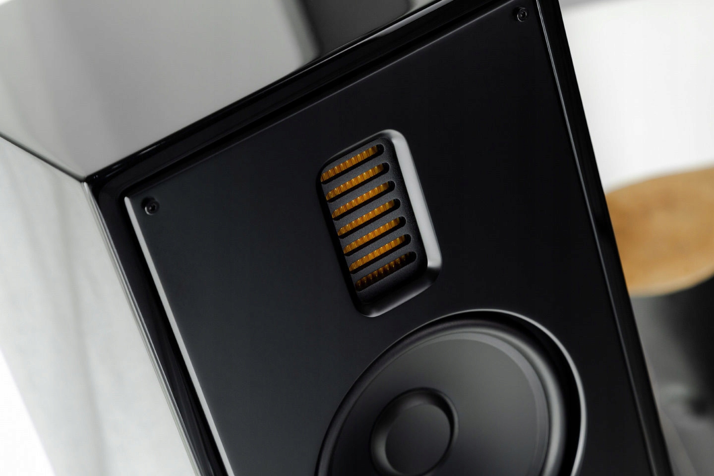 Эти функции позволяют конструкции твитера Folded Motion имитировать работу большой электростатической панели в традиционном корпусе динамика.