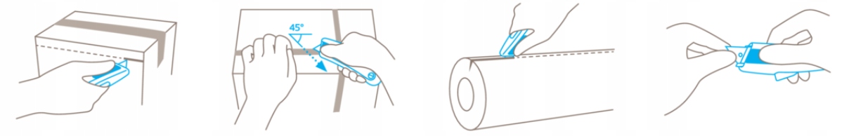 Клинок можно заменить быстро и безопасно. Даже не открывая ручку. Нажмите кнопку вверху и переместите слайдер довольно вперед. И вы уже можете заменить лезвие.