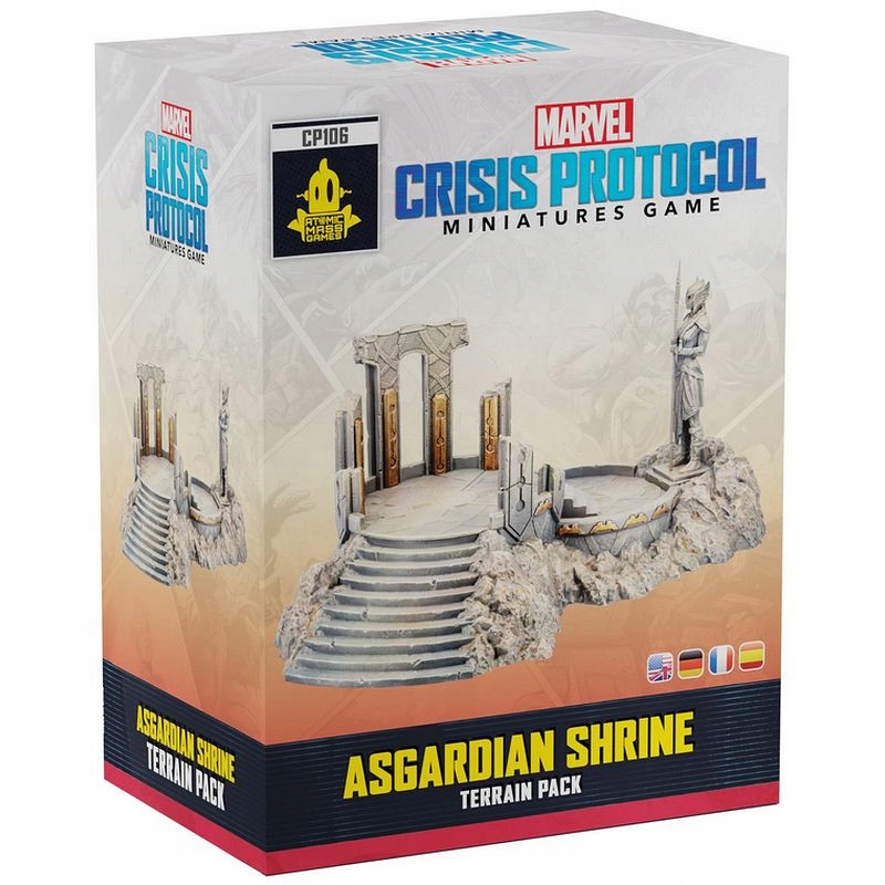 Asgardian Shrine — это красивый участок местности с разрушающимися руинами на возвышении перед статуей в честь валькирии — одной из легендарных воительниц Асгарда, которая охраняет тех, кто укрывается в ее обители. В этот набор также входят дополнительные правила, которые игроки могут использовать с ландшафтом, чтобы было интереснее.