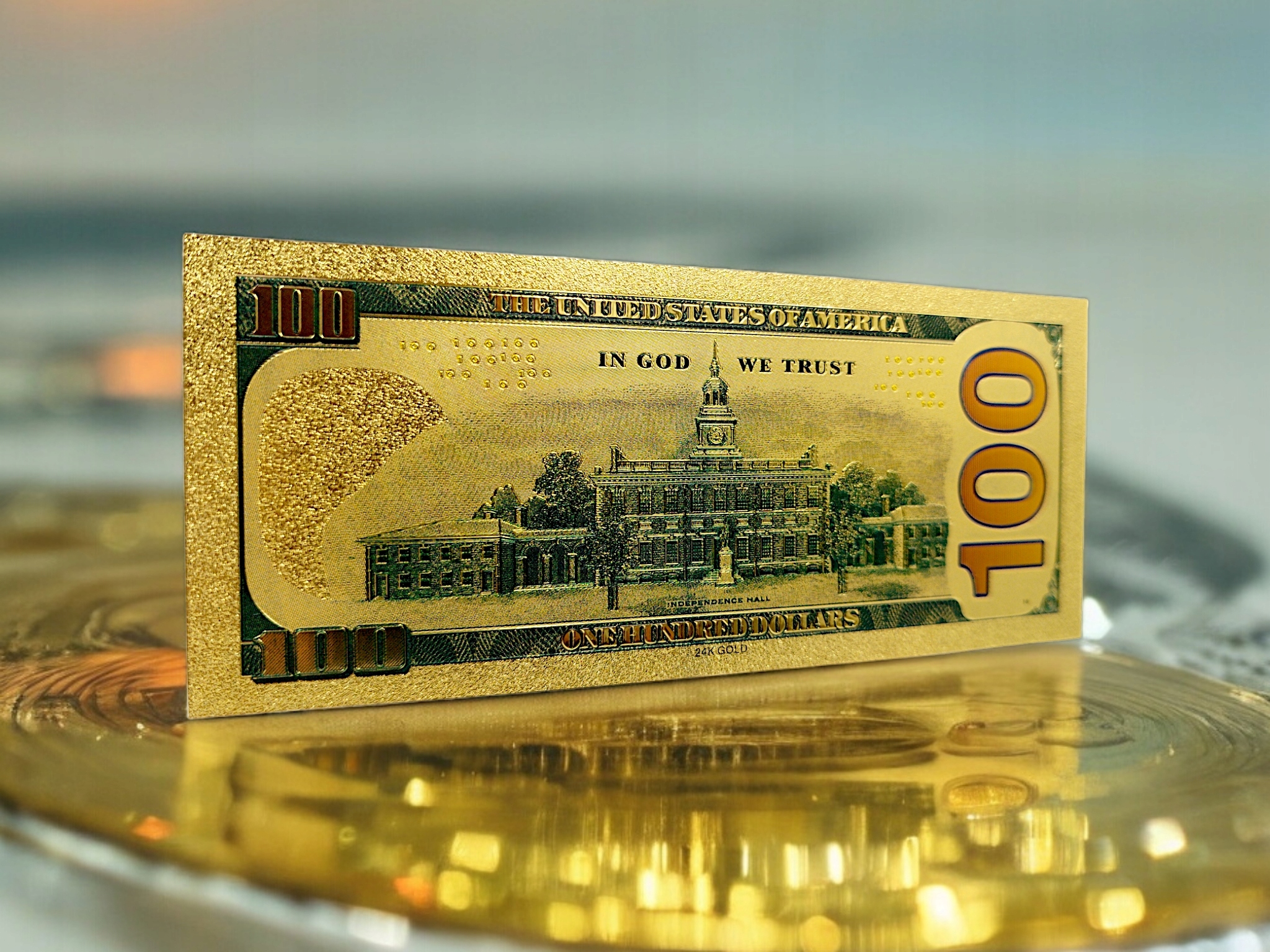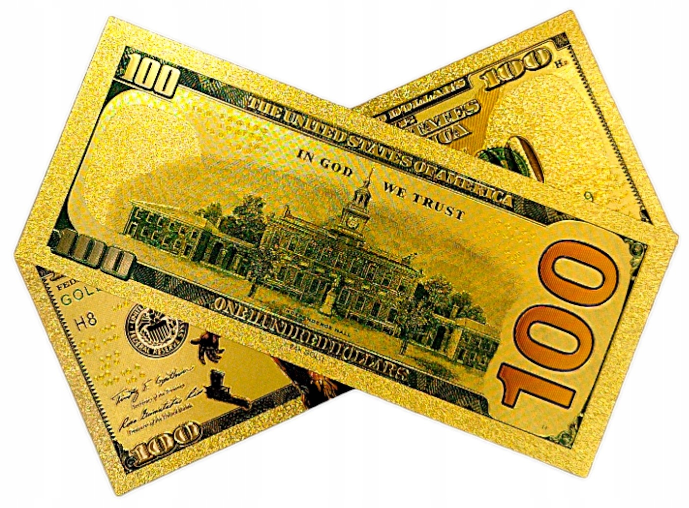 Банкнота изготовлена из ПВХ и покрыта золотой фольгой.