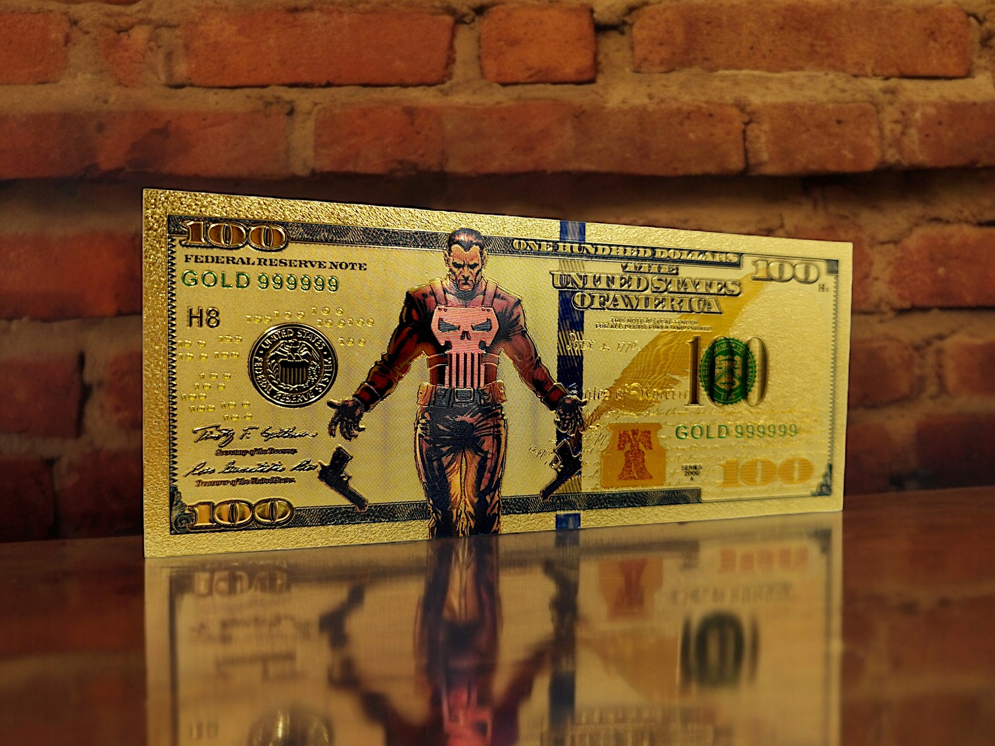 PUNISHER MARVEL Красивая позолоченная банкнота