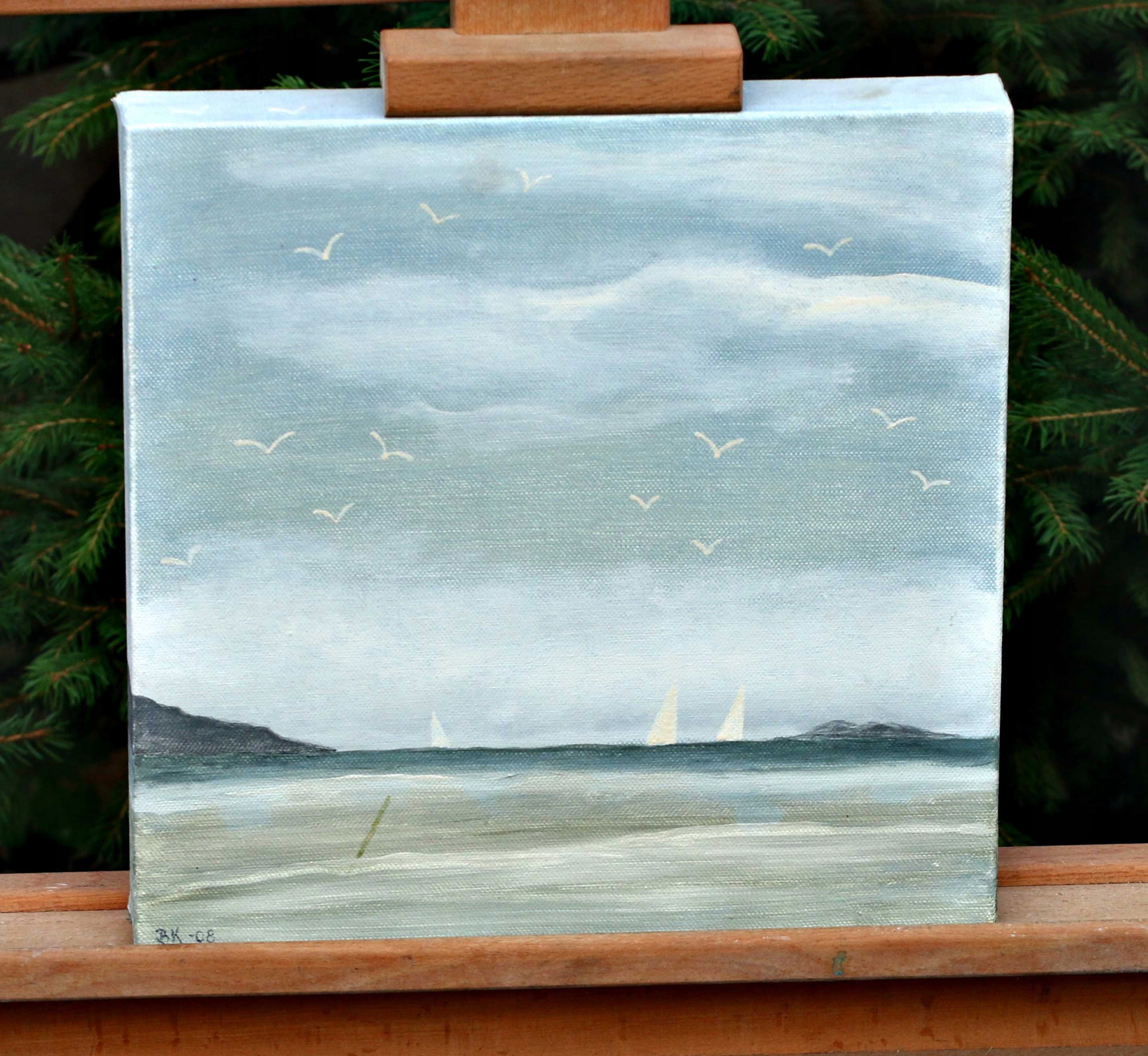 MARYNISTYCZNA SCENA Z MEWAMI CIEKAWY OBRAZ OLEJNY