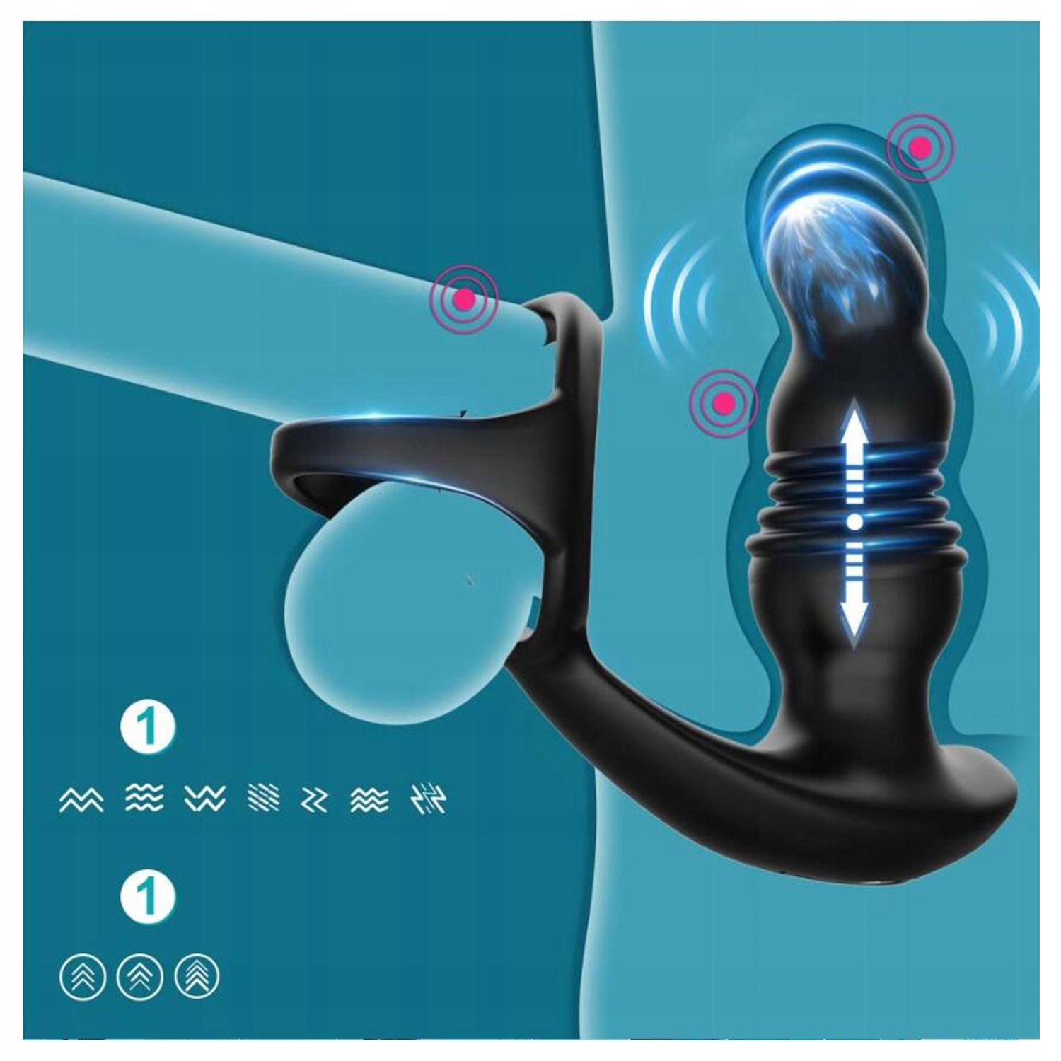 MASAŻER PROSTATY Z PIERŚCIENIEM 10 FUNKCJI CZARNY