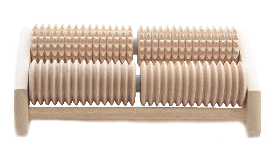 Массажер состоит из четырех массажных роликов с металлическими стержнями внутри.