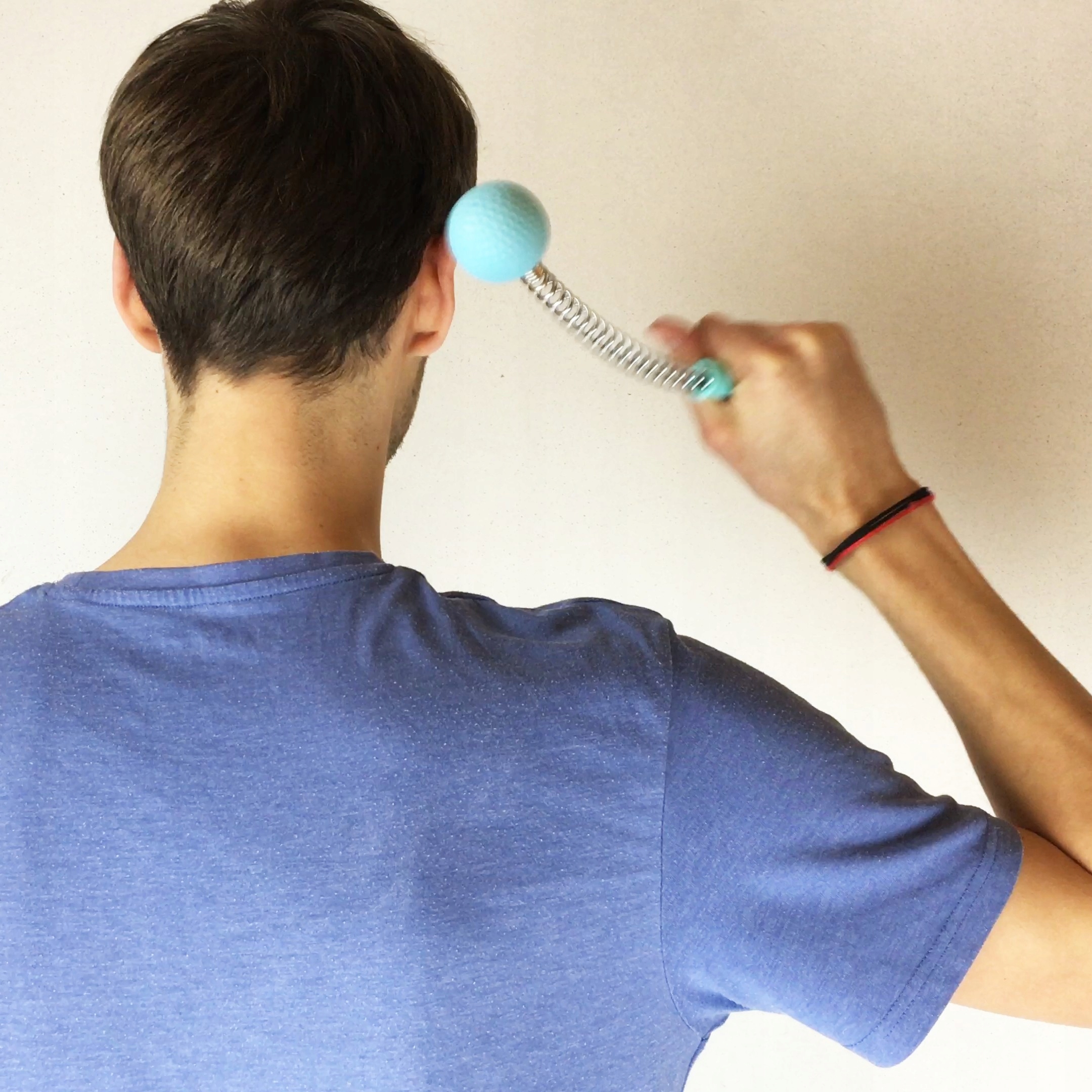 Прибор для постукивающего массажа, состоящий из резиновой головки, по размеру и форме напоминающей мяч для гольфа, пластикового стержня и соединяющей их стальной пружины. Его конструкция позволяет точно постукивать по выбранным частям тела.