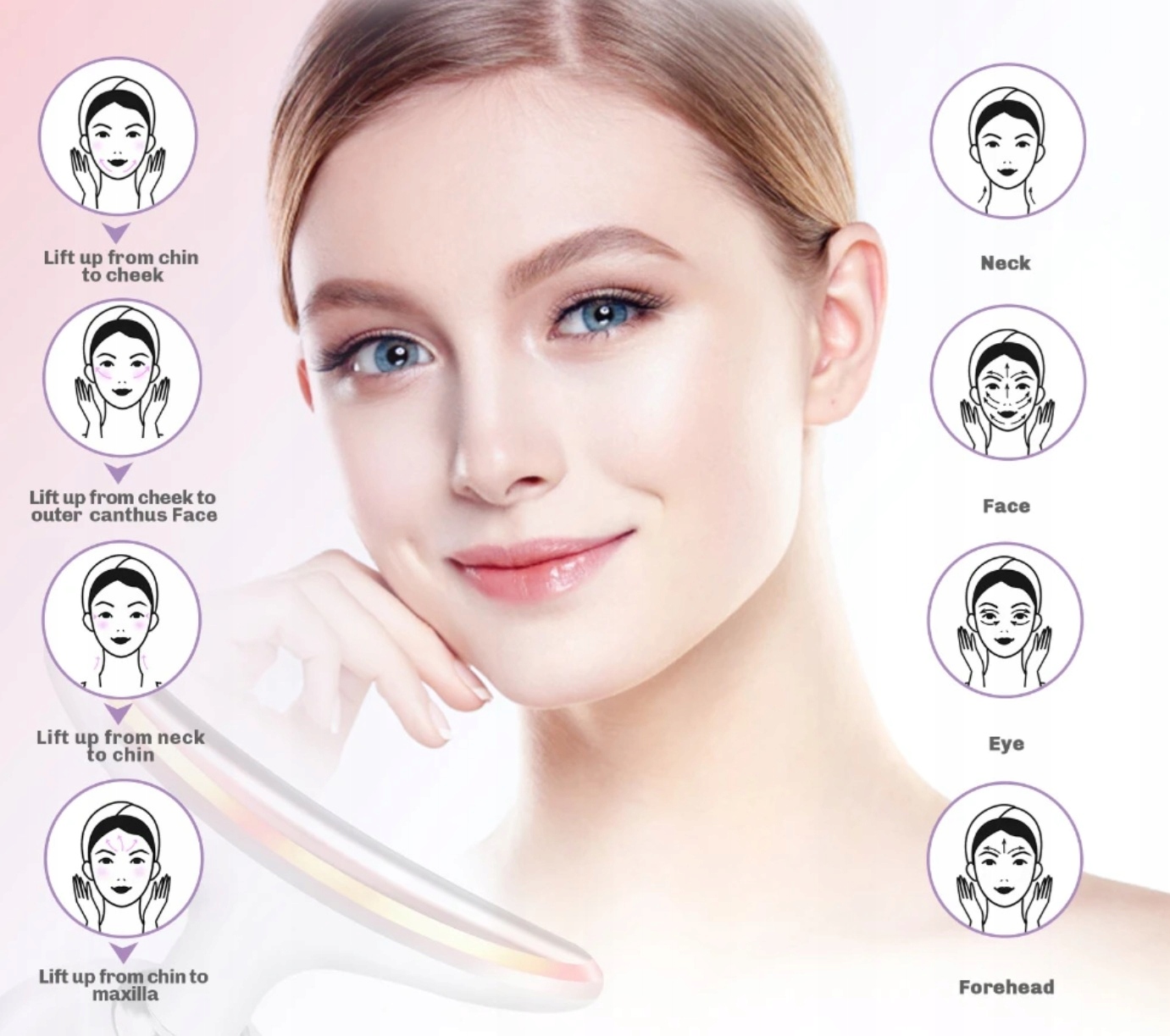 массаж до шеи и лица, эффективно поднимает и фигурирует кожу, уменьшает мимические морщины, маленькие линии и линии шеи, создавая для вас лебедь.