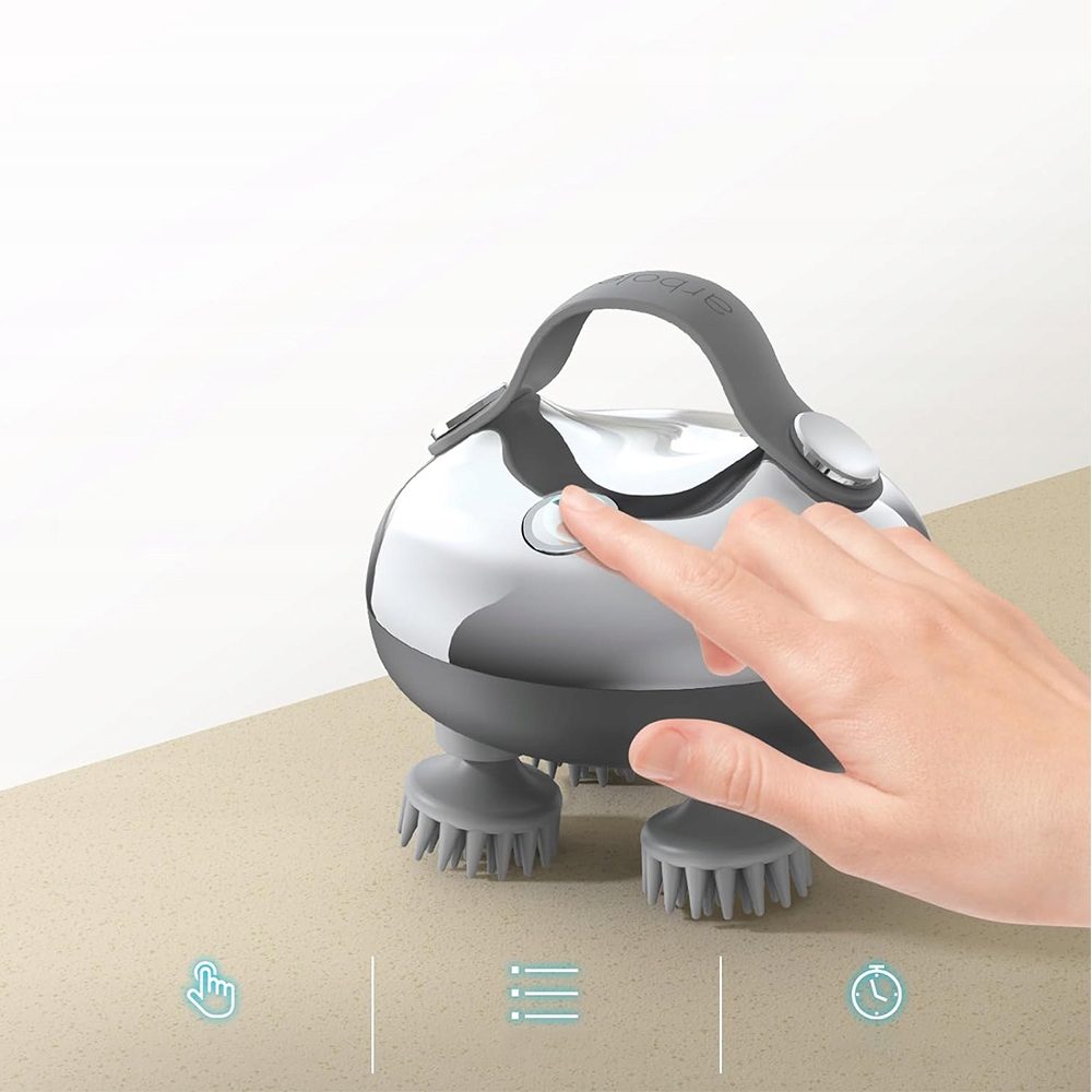 Наслаждайтесь потрясающим массажем кожи головы с помощью нашего водонепроницаемого массажера для головы IPX7. Эргономичная силиконовая ручка снижает давление при удержании и обеспечивает комфорт и защиту от скольжения. Наслаждайтесь преимуществами универсального влажного и сухого использования с помощью массажа кожи головы, который поможет очистить кожу головы, стимулировать кровообращение и способствовать росту волос с помощью успокаивающего и стабилизирующего массажа. Напоминание: не погружайте массажер в воду на длительное время.