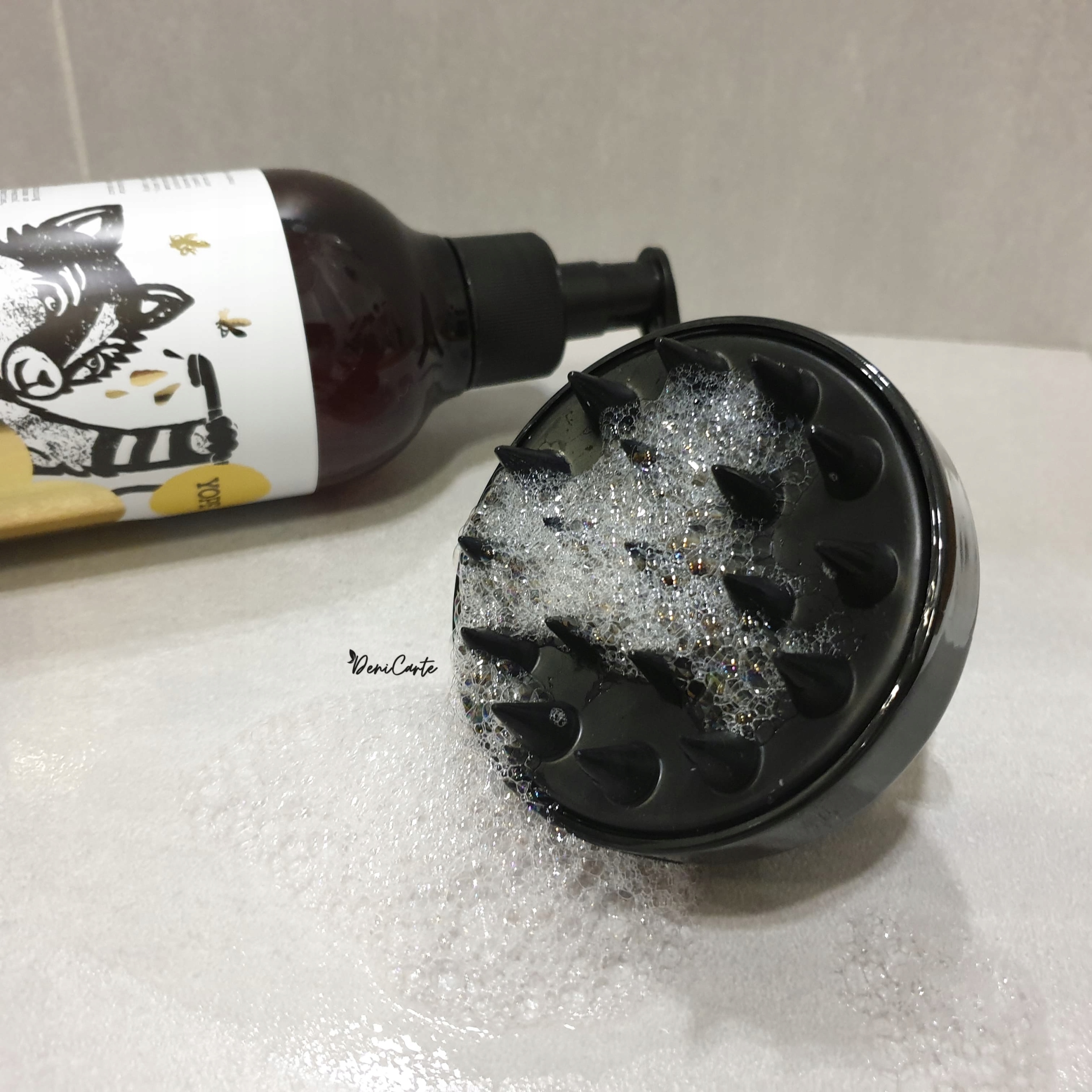 - способствует равномерному распределению шампуня и кондиционера