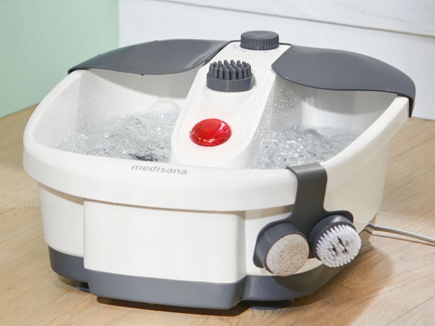 Стопа Medisana Гидромассажный аппарат предлагает помимо описанных выше функций дополнительную возможность массажа водой без включения аппарата: с помощью массажного ролика надавливайте ступнями ног на массажный ролик, перемещая их вперед и назад с приятной интенсивностью. Это стимулирует кровоток и оказывает регенерирующее действие на стопы.