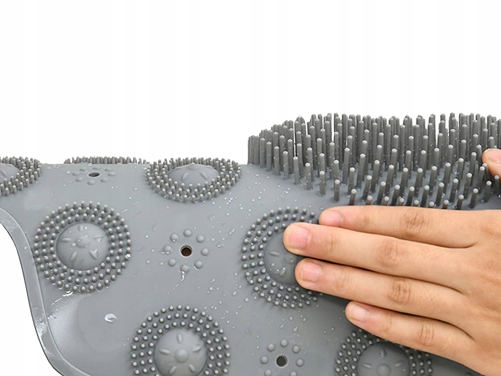 Массажерный коврик имеет множество присосок на задней стороне, что обеспечивает превосходное сцепление и устойчивость. Он хорошо впитывает влагу на гладкой поверхности и не смещается случайно во время принятия душа, он очень прочный и нескользящий. Безопасно для пожилых людей и детей.