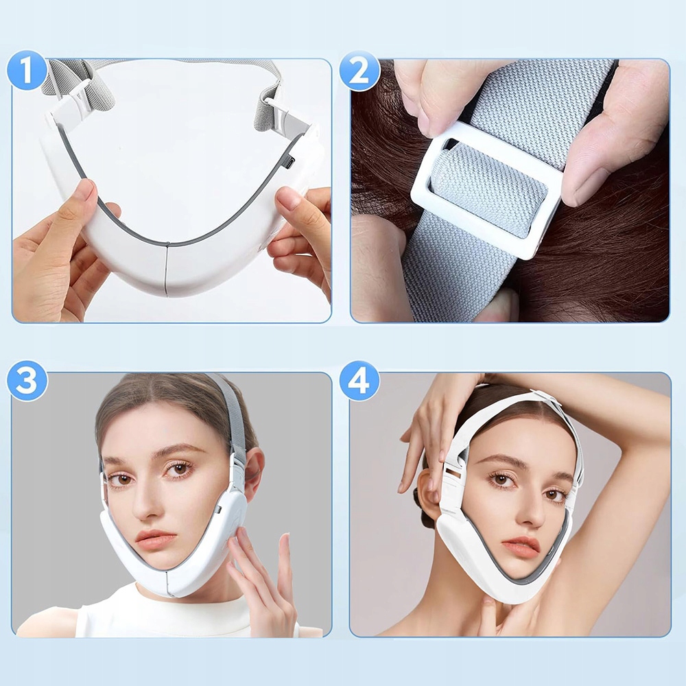 V-образный дизайн:Этот массажер для лица при втором подбородке идеально адаптируется к контурам лица. лицо и плотно прилегает к линии подбородка. Перед включением устройства отрегулируйте длину ремешка. Зафиксируйте V-образный массажер в правильном положении, чтобы массировать мышцы челюсти и уменьшить отечность подбородка. Складная конструкция с регулируемым оголовьем обеспечивает оптимальный массаж.