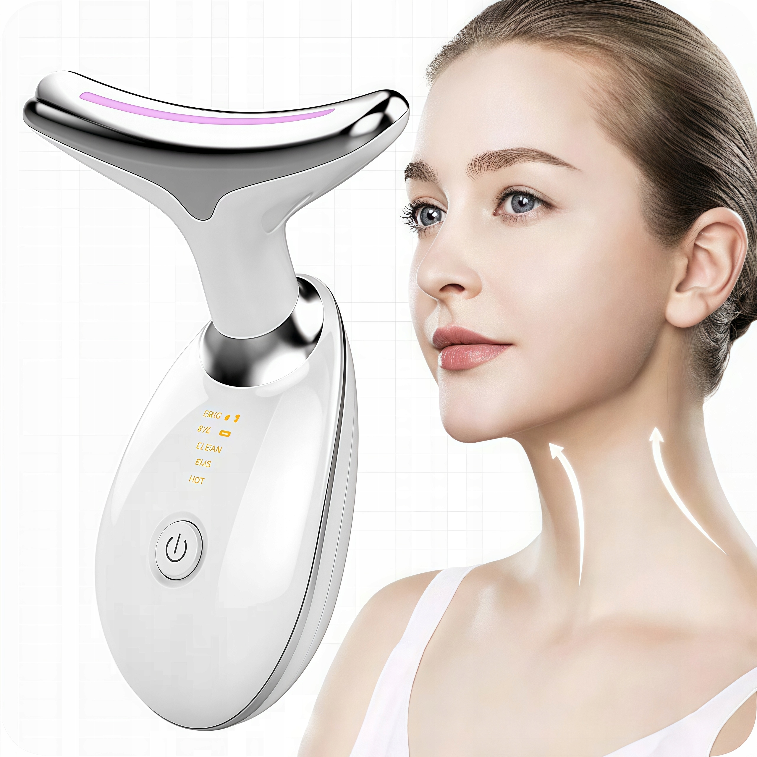 Убийся Gesichtsmassgerät Combiniert 7 Led-Leuchten Mit Einer 45 ° C-Wärmefunckunction, um Falten, um um ut-und schlaffe zu zu zu zu zu zu zu zu zu zu zu zu zu zu. Als effektyives anti-falten-gesichtsmassagegerät förtdert es die auufnahme von hautpflegeproducten und end enspannt die haut sichtbar.