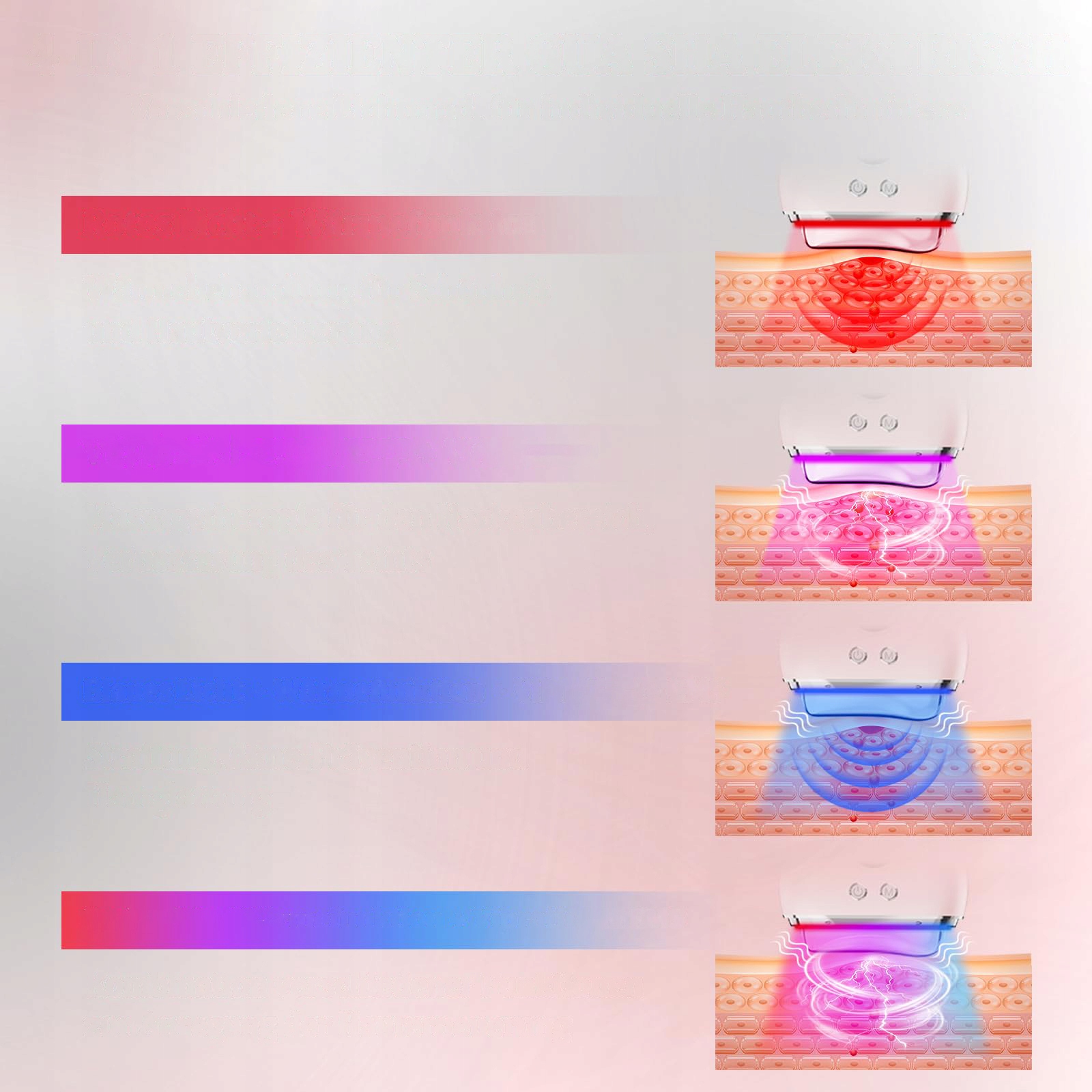 Устройство по уходу за лицом 4 в 1: Наше устройство по уходу за лицом и шеей соединяет 4 режима и 3 светодиодных цветов, обеспечивая целевой уход за кожей. Красный свет поддерживает клеточную активность и стимулирует кровообращение, фиолетовый свет расслабляет и подтягивает кожу, а синий свет сужает поры, уровни кожного сала и поддерживает поглощение продуктов ухода. Независимо от того, касается ли речь идет о тонких морщинах, матовом цвете лица или неровной текстуре кожи-устройство для удаления двойного подбородка адаптируется к вашим потребностям.