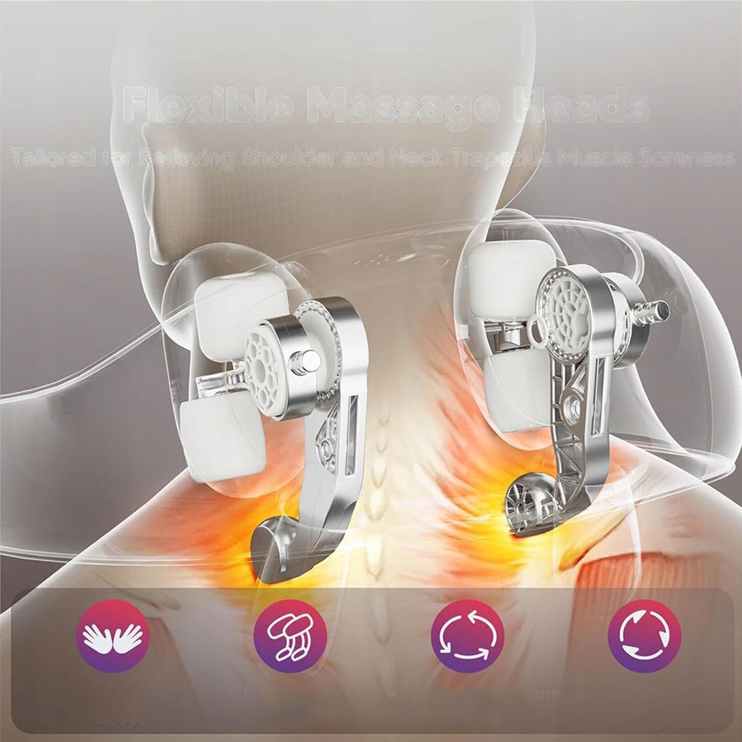Новые массажные головки 6D обеспечивают более широкую зону массажа, простирающуюся от шеи до трапециевидных мышц и плеч. Массажные головки из силиконовой резины мягче металлических, обеспечивая нежное прикосновение к коже.