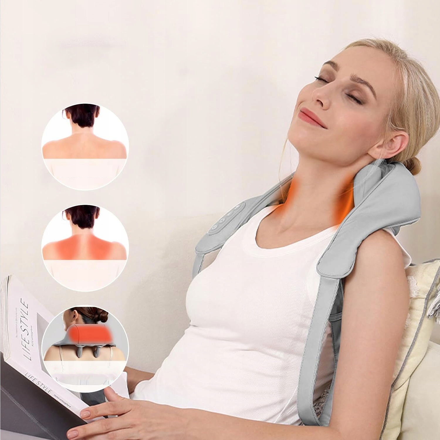 МАССАЖЕР ДЛЯ ШЕИ, СПИНЫ, МАССАЖНЫЙ ПОЯС С ПОДОГРЕВОМ ШИАЦУ, МАССАЖ