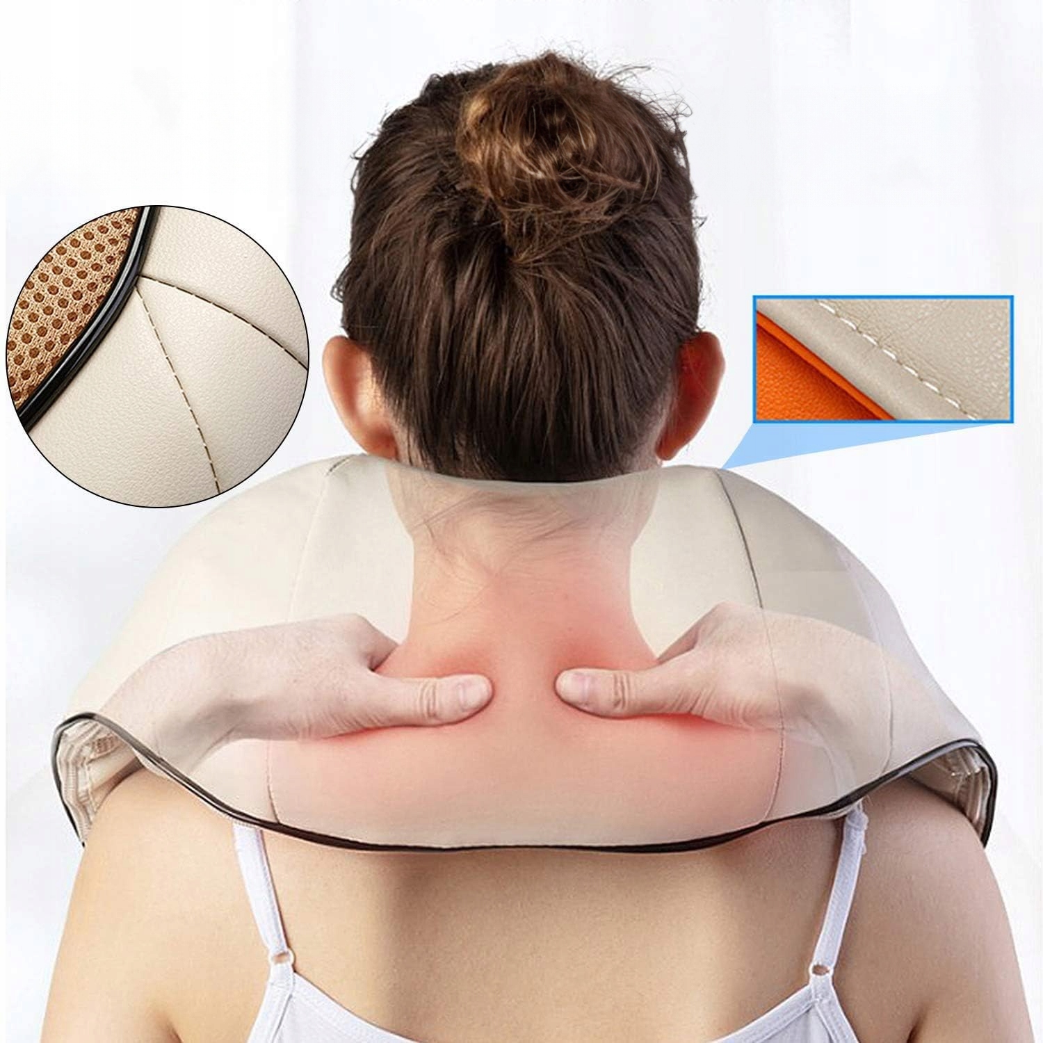 Массажер расслабляет напряженные мышцы посредством массажа с помощью 2 вращающихся головок с 8 массажными шариками (шарики вращаются против часовой стрелки вправо и влево) и расслабляет после тяжелого дня и эффективно устраняет боли в шейном и поясничном отделе позвоночника. Он изготовлен из мягкой эко-кожи и дышащей сетчатой ткани.