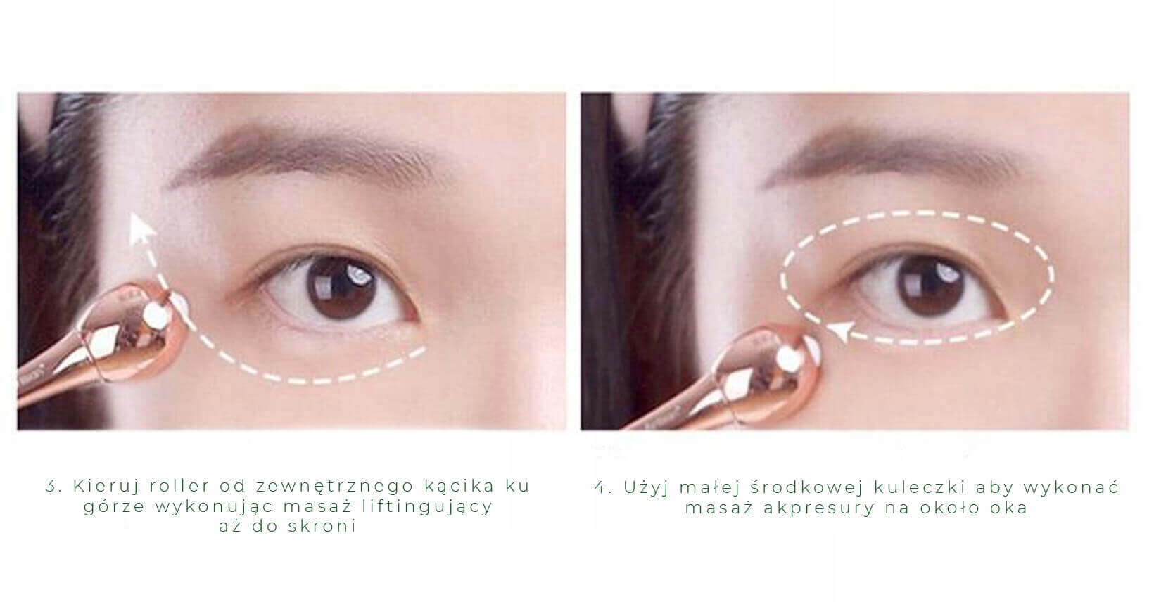 Двигайте массажером круговыми движениями от внутреннего уголка глаза к внешнему уголку и по верхнему веку.