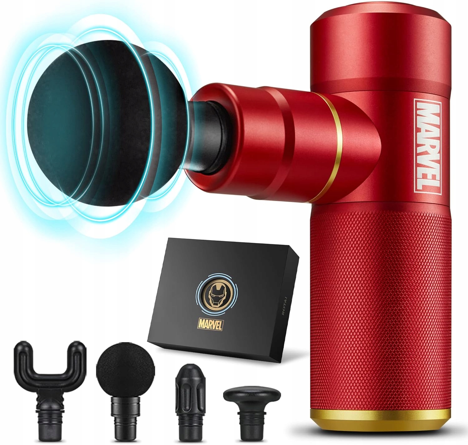 Фирменный массажер Marvel: Мини-массажный пистолет в настоящее время доступен в трех версиях: «Человек-паук», «Железный человек» и «Капитан Америка». В комплект входят 4 мягкие, приятные для кожи массажные головки, сферическая головка, U-образная головка, конусообразная головка и плоская головка для разных частей тела, идеально подходящие для массажа различных групп мышц и уменьшения жесткости мышечной боли.