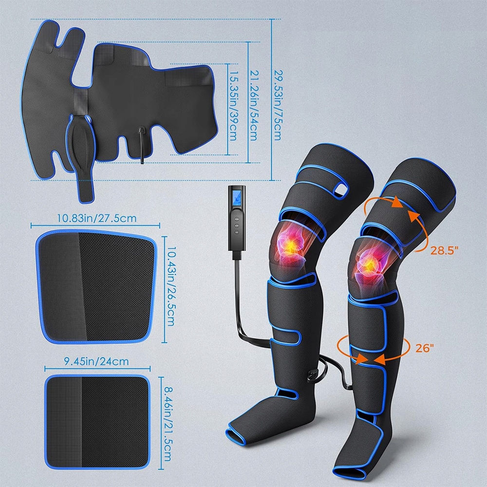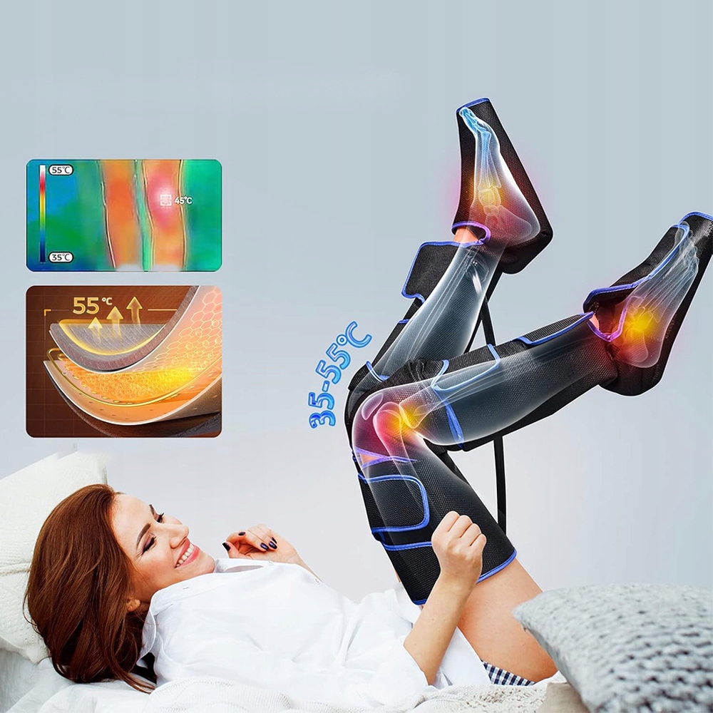 • Несколько встроенных подушек безопасности имитируют ручной массаж, чередуя надувание и сдувание, эффективно расслабляя мышцы бедер, икр и ступней.
