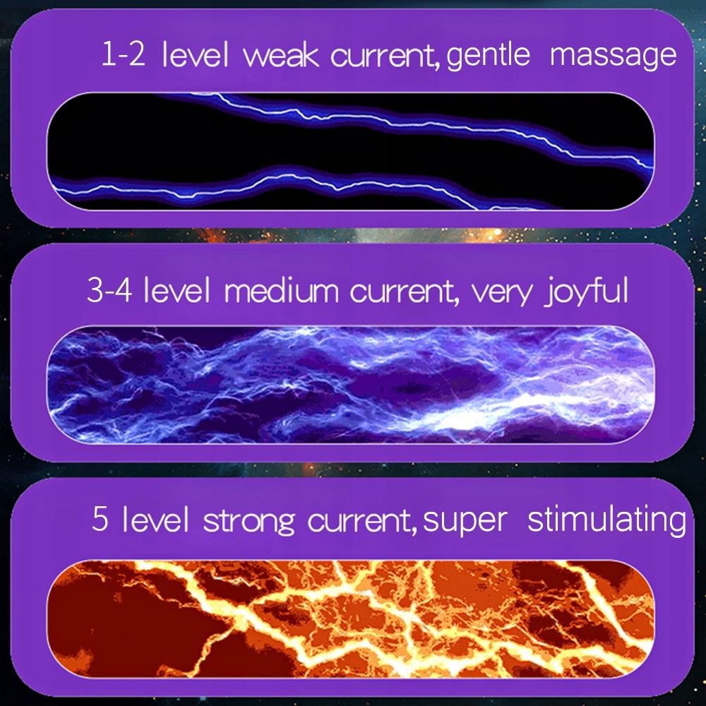 Режим: 10-частотная вибрация, 5-частотный электрический шок, сильная стимуляция трения.