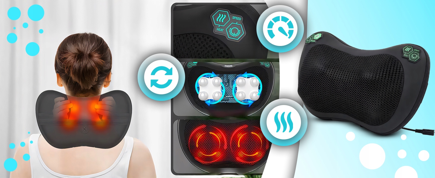 Шиацу массажер, массируя подушку для массажа шеи, нагретое тело h1>