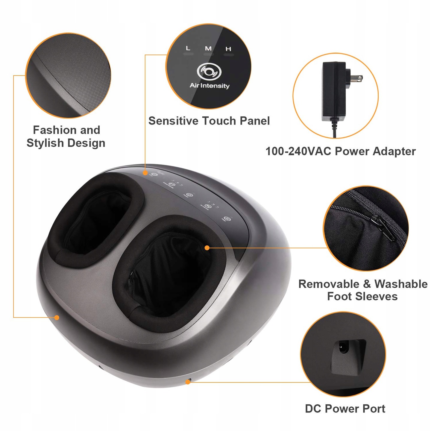 - НАСТРОЙКА МАССАЖА НОГ — всеми функциями можно управлять и использовать по отдельности. Благодаря 3 различным уровням интенсивности вы можете регулировать интенсивность разминающего массажа и сжатия воздуха для достижения точного давления. Или включите или отключите любую функцию в соответствии с вашими потребностями.