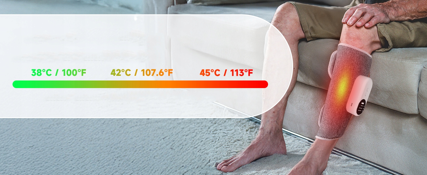 Функция нагрева согревает икры и ступни, облегчая холод в ногах, боль и плохое кровообращение. Свобода беспроводной связи и длительное использование