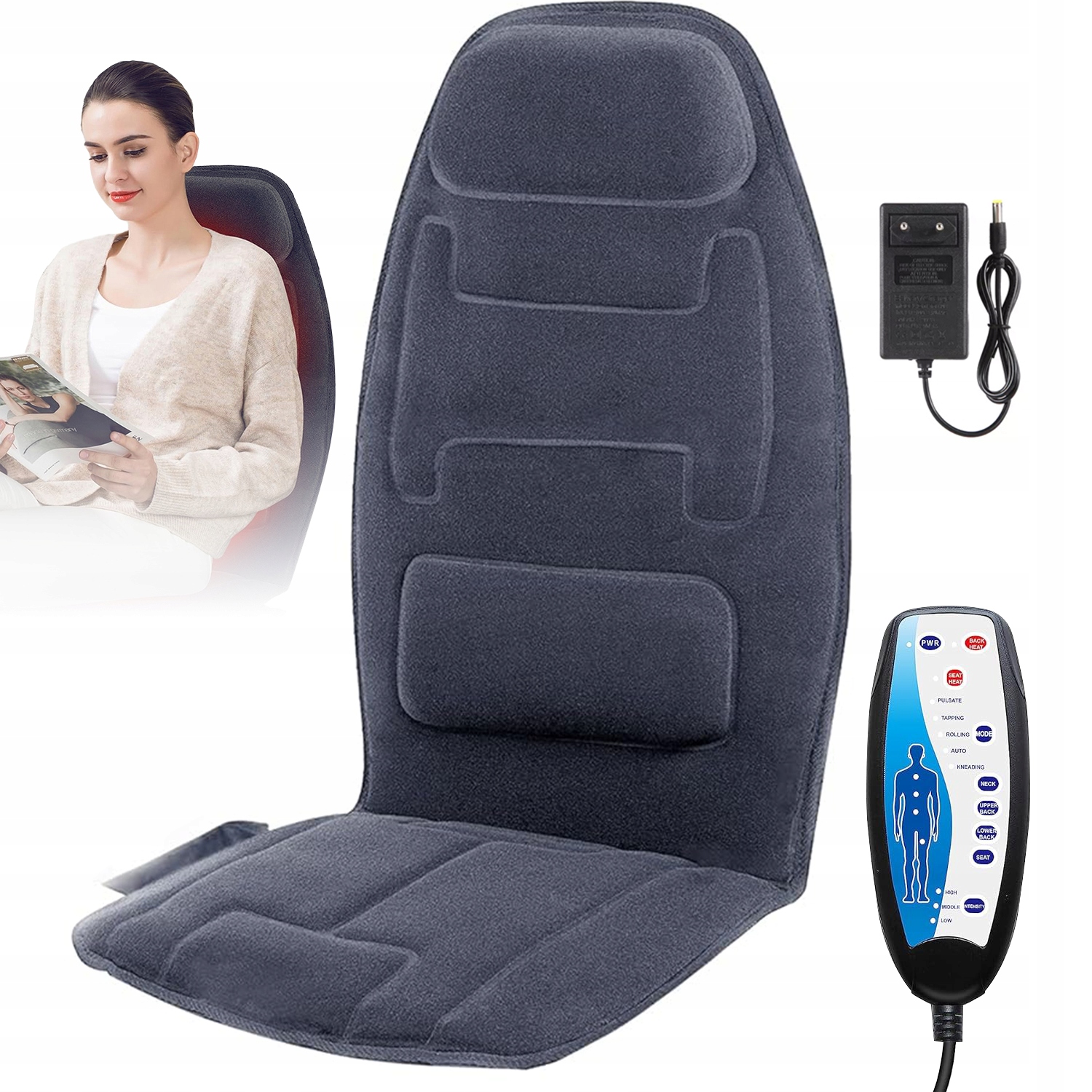 МАССАЖНАЯ ПОДУШКА 10 МОТОРОВ 4 ЗОНЫ 5 РЕЖИМОВ 3 ИНТЕНСИВНОСТИ ЗАЩИТА