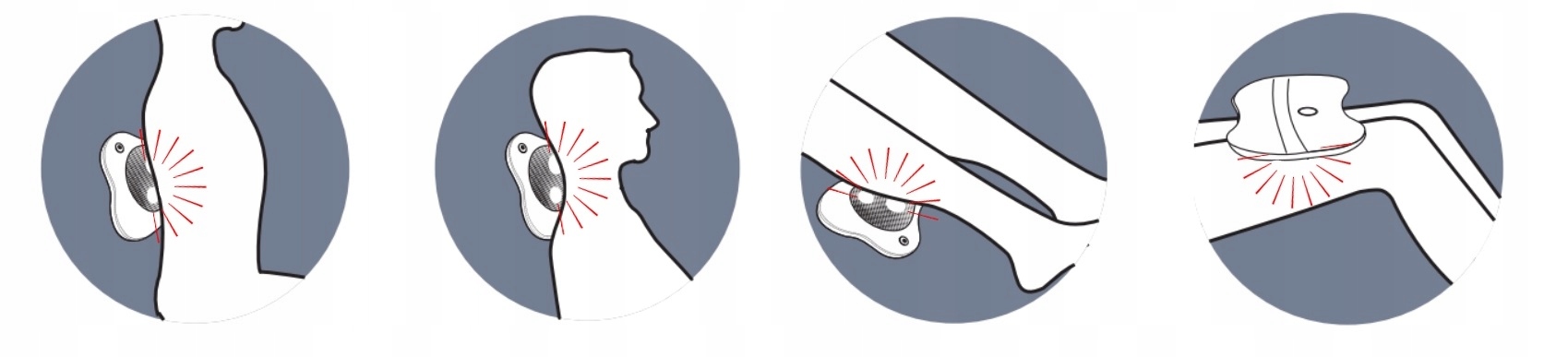 - расслабляет напряженные мышцы посредством массажа 2 вращающимися головками с 4 массажными точками (шарики вращаются против часовой стрелки вправо и влево)