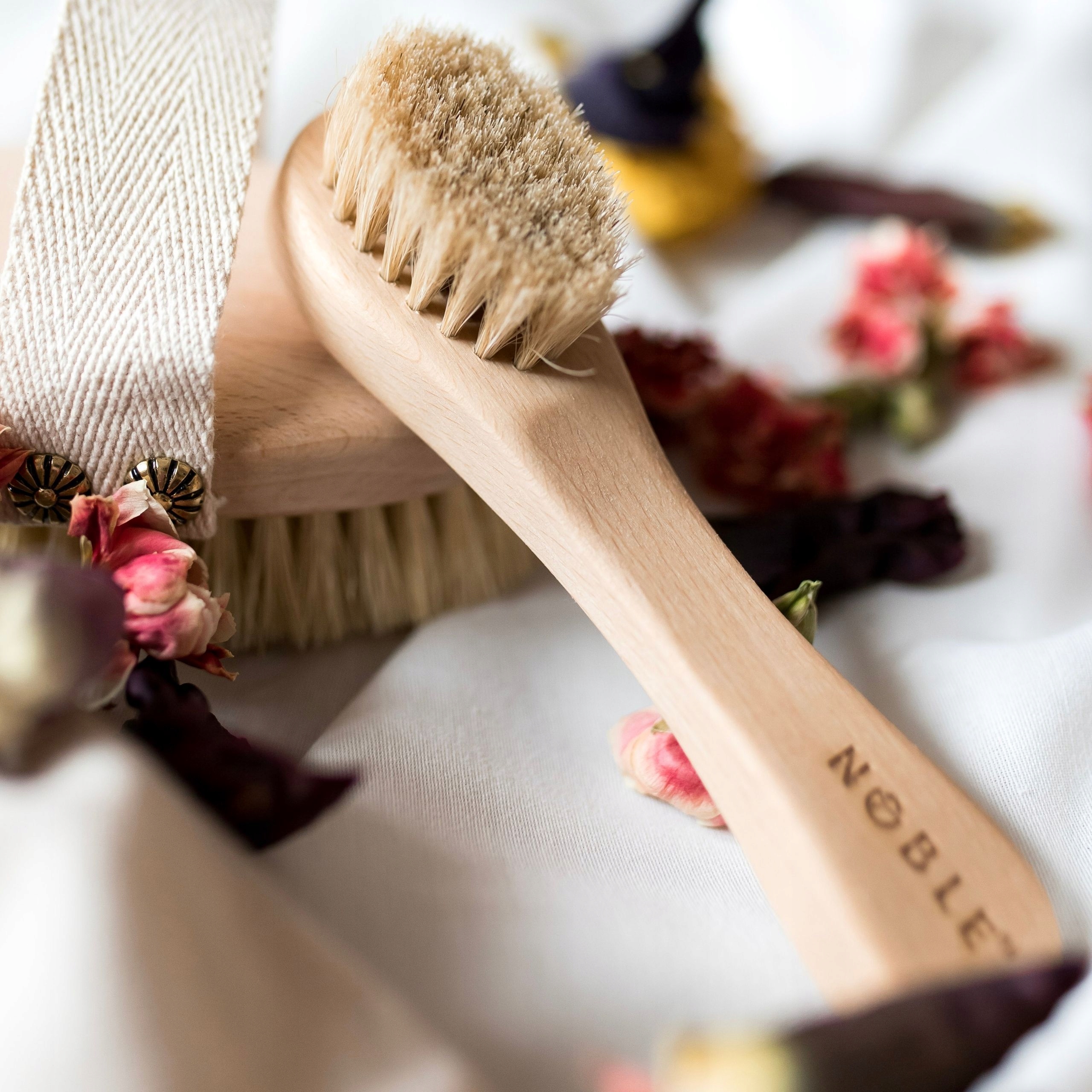 К щетке прилагается краткое руководство по чистке и типам щеточек для сухого массажа NOBLE. ®