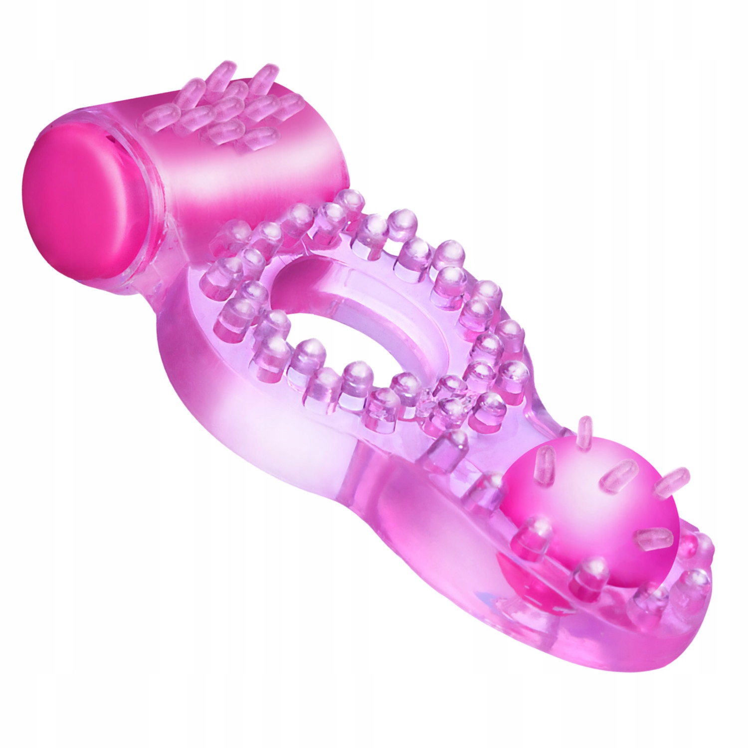 Эрекционное кольцо с вибростимулятором клитора, изготовлено из суперэластичного силикона. Подходит для любого пениса – диаметр отверстия регулируется. Его цель – раздражение клитора, половых губ и входа во влагалище, а также усиление эрекции у мужчин. Он похож на тысячи других насадок такого типа, но в нем есть «что-то», а именно небольшой жемчужный шарик, который еще больше раздражает клитор во время полового акта, а также дополнительно имеет виброустройство — это устройство с двойной силой.