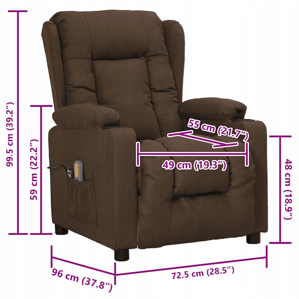 Массажное кресло с функцией подъема, 3 положения наклона, коричневое, 72,5x96x99,5 см