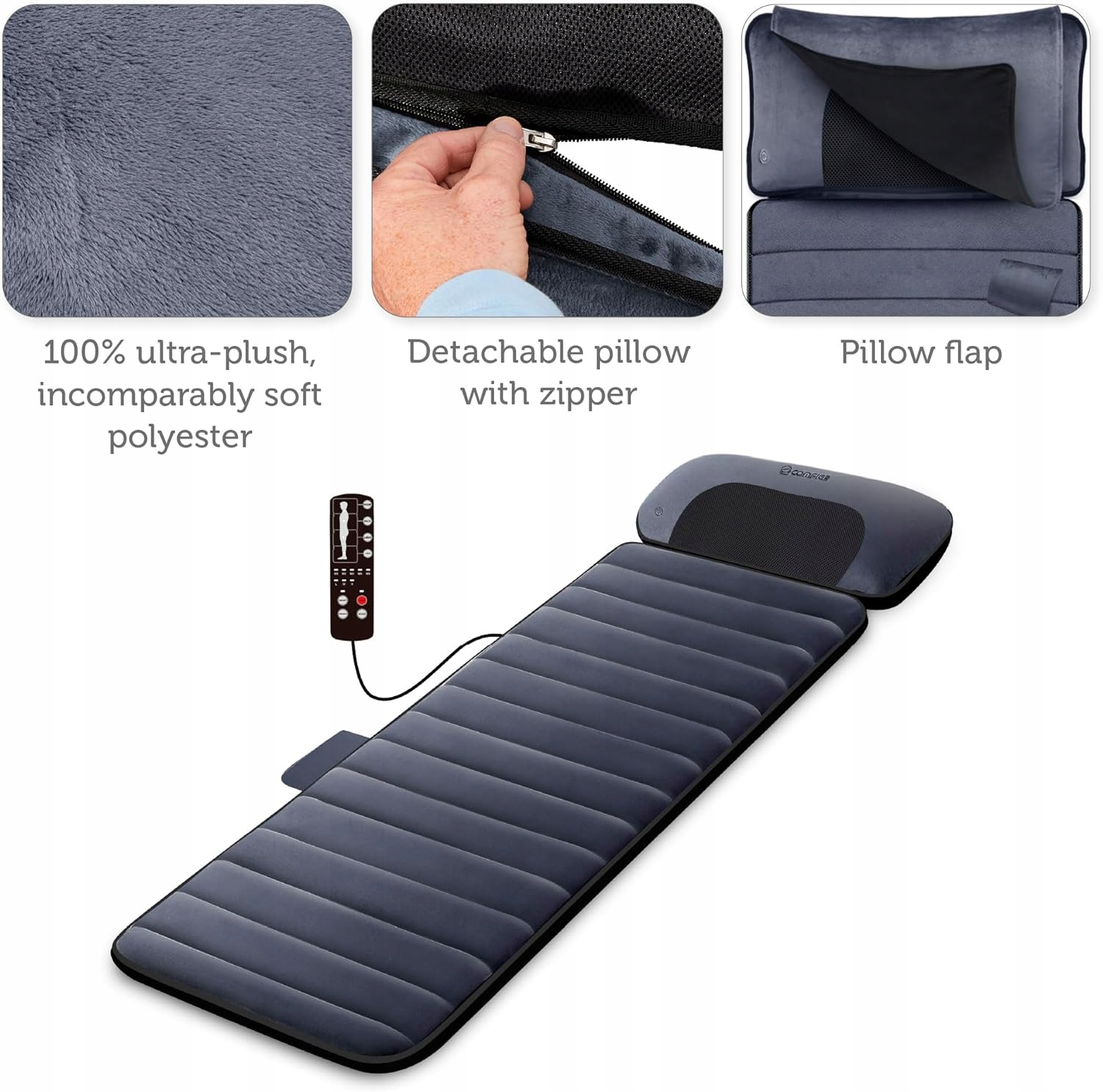 Массажный коврик Comfier оснащен различными режимами массажа и грелками, которые снимают стресс и усталость и делают все тело чистым. приятный и расслабленный. Имеется 5 режимов массажа и 3 уровня интенсивности, 4 селективных зоны массажа: руки, верхняя часть спины, поясница, ноги или объединение нескольких зон в соответствии с вашими потребностями.