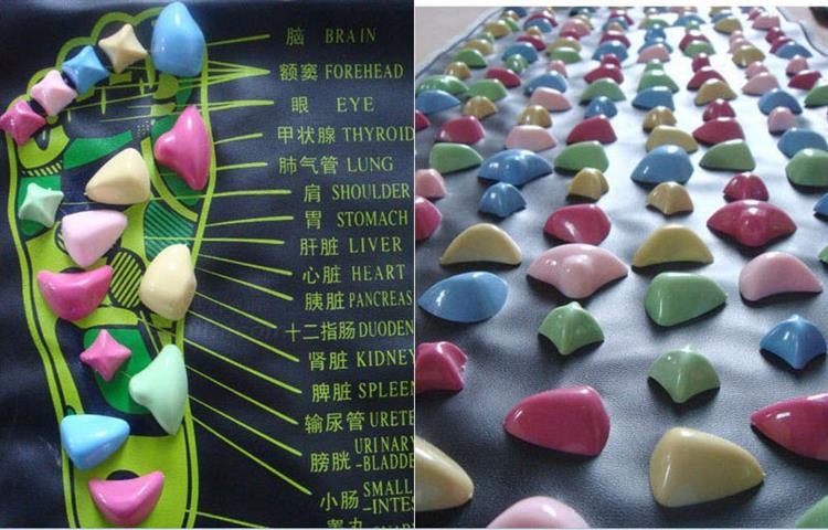 В данном случае китайское происхождение коврика является его большим преимуществом. Именно китайцы усовершенствовали «искусство осязания» за 3000 лет до нашей эры. Они разработали подробную карту акупунктурных точек на теле, массаж которых влияет на положительное функционирование того или иного органа. Массируя соответствующую точку на стопе или где-либо еще, можно, например, мгновенно облегчить головную, зубную боль или боль в миндалинах. Сегодня мы также можем легко научно доказать лечебный эффект массажа. Массажный коврик позволяет насладиться преимуществами массажа, не выходя из дома и без больших затрат на посещение массажиста.