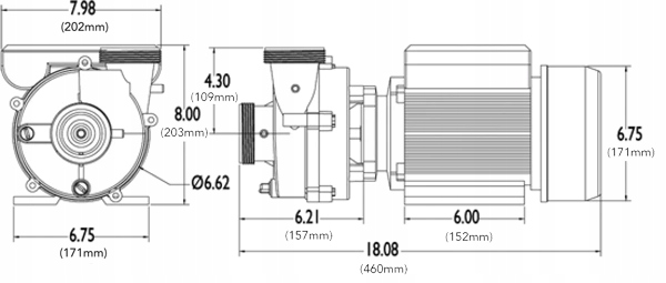 Двухскоростной массажный насос от Balboa Water Group. Разработан для высокой производительности и превосходной пропускной способности. Двигатель воздушного охлаждения, устойчивый к влаге и низким температурам.