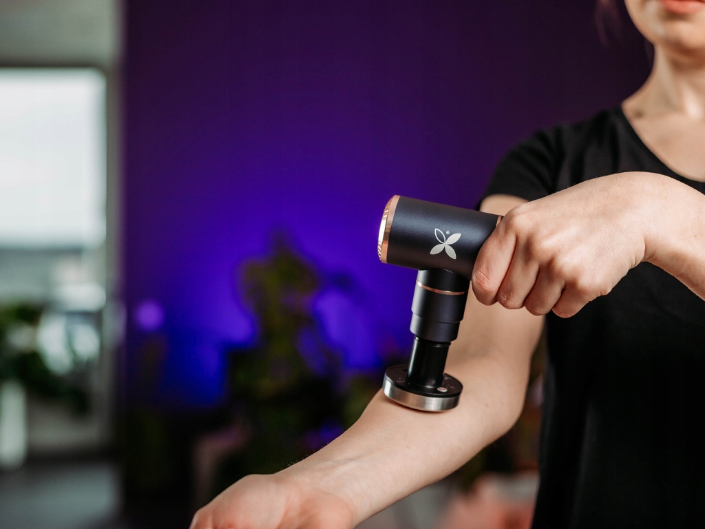 Массажный пистолет выделяется
