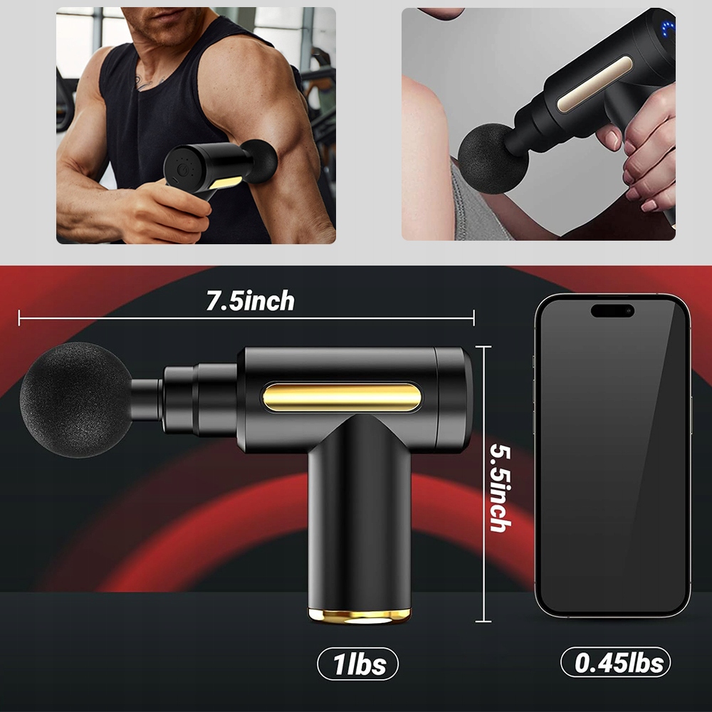☑️При весе всего 550 грамм пистолет для массажа мышц легко держать в одной руке и поставляется в компактном футляре. Амплитуда вибрации 6 мм глубоко расслабляет мышцы, а компактный дизайн позволяет наслаждаться отдыхом где угодно и когда угодно, не нарушая при этом окружающих. Вы можете взять его с собой в спортзал, офис или на улицу. Примечание. Не используйте во время зарядки.