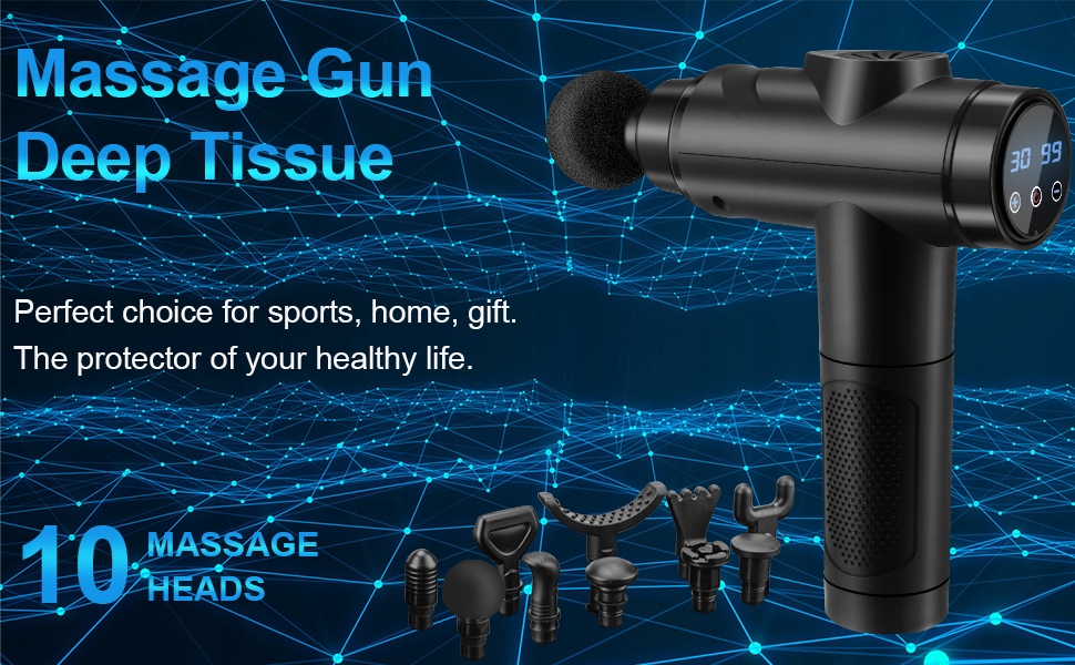 - 10 профессиональных массажных головок: пистолет для массажа глубоких тканей поставляется с 10 сменными массажными головками, которые подходят для разных частей тела, поэтому вы можете достичь любой части тела. мышцы и удовлетворить все ваши потребности в мышечной релаксации. Массажные головки разной формы можно использовать на разных группах мышц и обеспечивать целенаправленную терапию для быстрого восстановления.