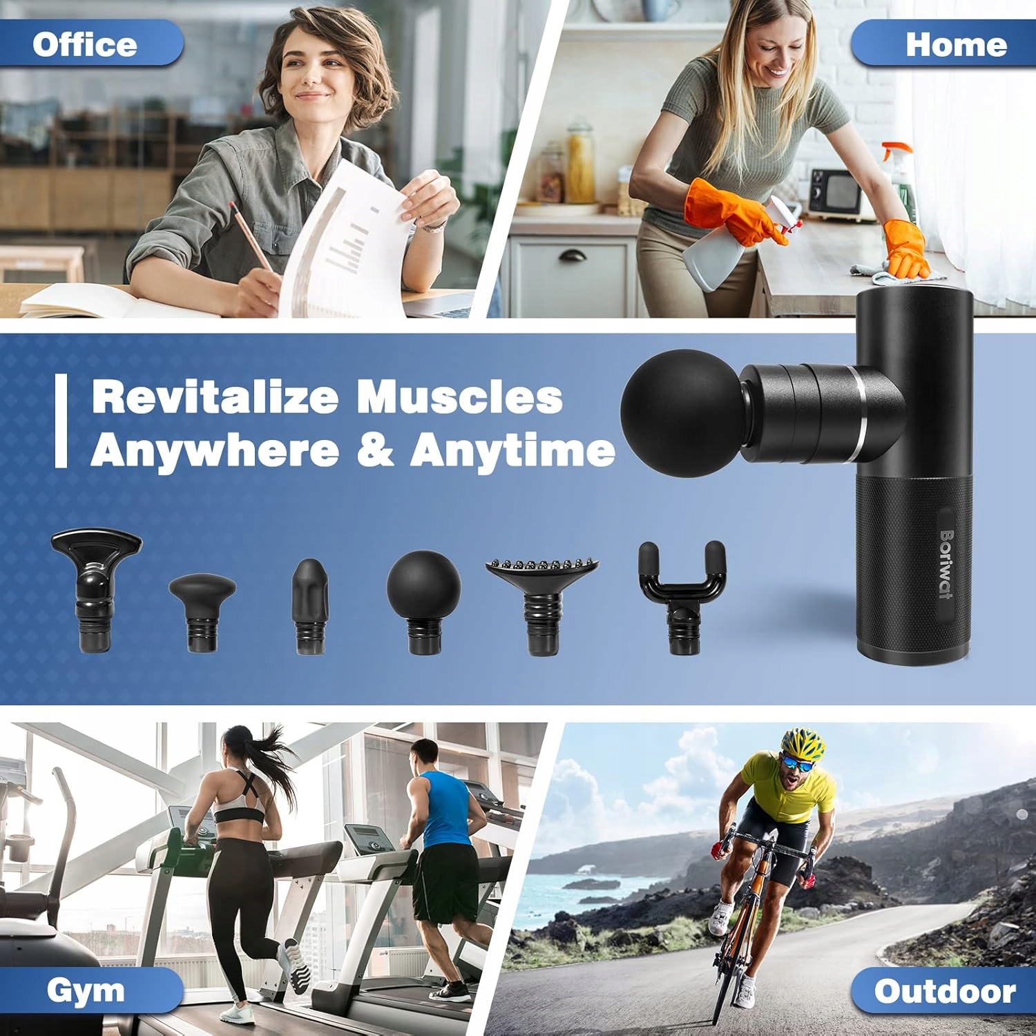 МАСАЖНИЙ ПІСТОЛЕТ ПОРТАТИВНИЙ МАСАЖЕР ДЛЯ М'ЯЗІВ СПИНИ BORIWAT