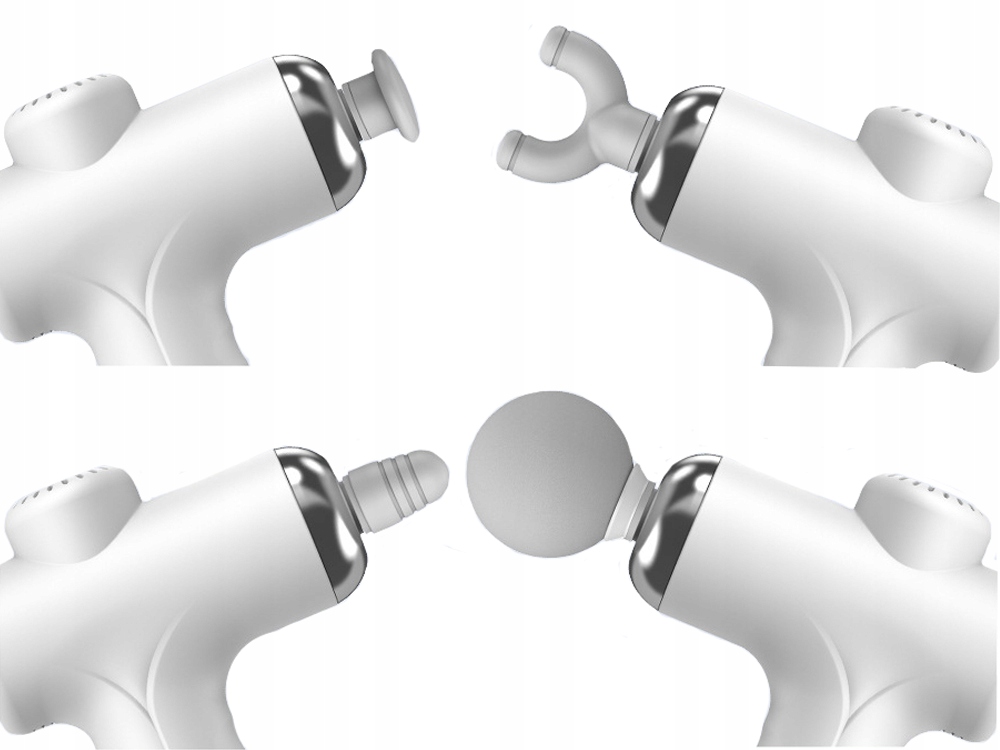 Массажер был спроектирован в эргономичной форме в форме пистолета, благодаря этому идеально адаптируется к руке . Содержит 4 различных кончиков, каждый предназначенный для различной мышечной части