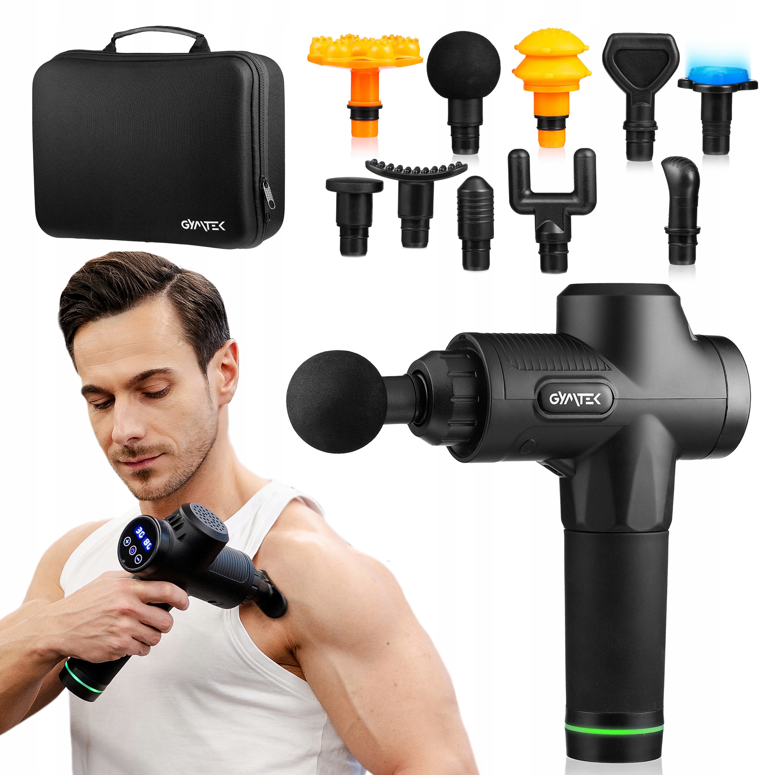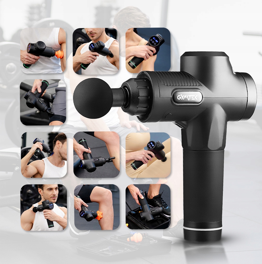 Массажный пистолет Gymtek – универсальное устройство, позволяющее провести комплексную регенерацию мышц. Он оснащен 10 сменными насадками, каждая из которых имеет разное назначение – от интенсивного массажа крупных групп мышц до нежного расслабления чувствительных зон. Благодаря 30 программам массажа и широкому диапазону скоростей вы можете регулировать интенсивность массажа в соответствии со своими потребностями — от легкого расслабления до глубокого массажа тканей.