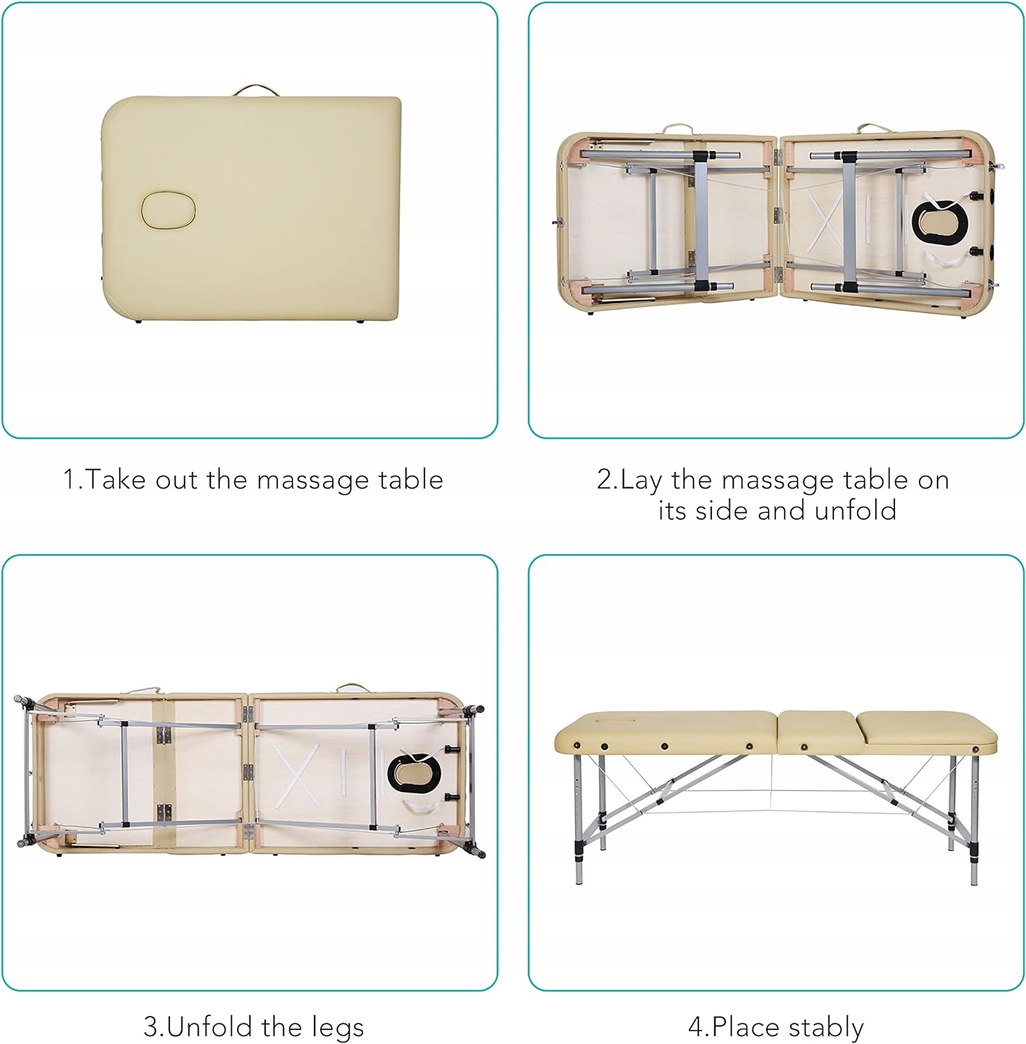 Массажный стол Раскладная кровать, с 3-зонной регулировкой по высоте, алюминиевые ножки с высококачественной искусственной кожей и многослойной пеной высокой плотности, черный 14,5 кг (грузоподъемность 270 кг) MGBC301H