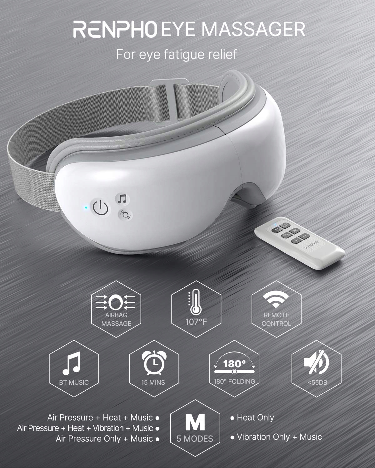 МАССАЖЕР ДЛЯ ГЛАЗ ПУЛЬТ ДИСТАНЦИОННОГО УПРАВЛЕНИЯ ПОДОГРЕВ ТЕРАПИЯ СНА