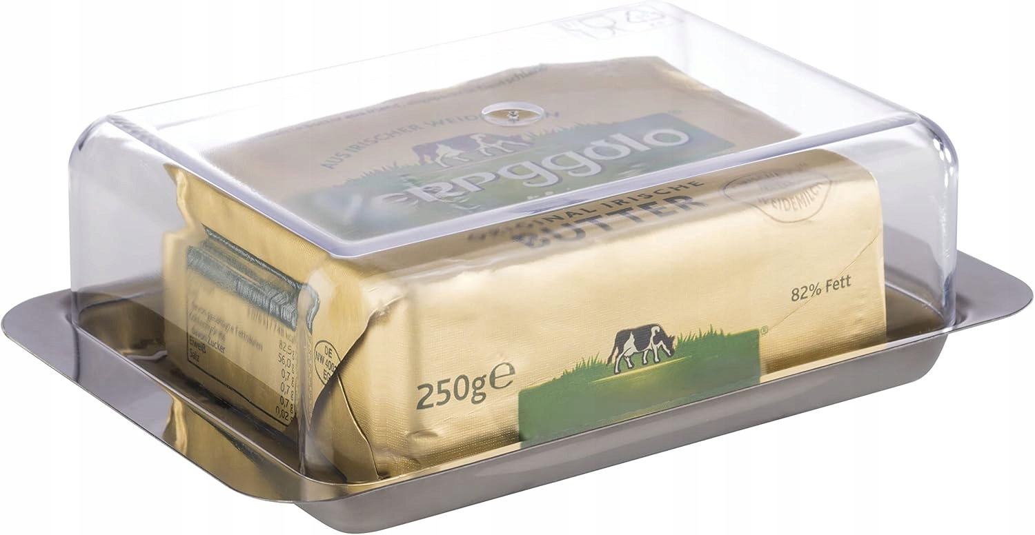 - Простота в использовании: масленка имеет нержавеющее дно, прочное, устойчивое к коррозии и простое в уходе. Прозрачная пластиковая крышка легко снимается, поэтому масло можно прекрасно подать на стол. Пластиковую крышку нельзя мыть в посудомоечной машине.
