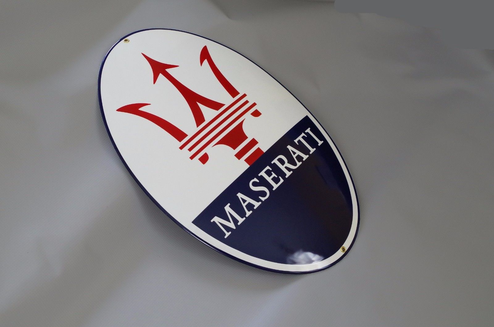 Предметом предложения является эмалевый знак - логотип MASERATI 50х32 см