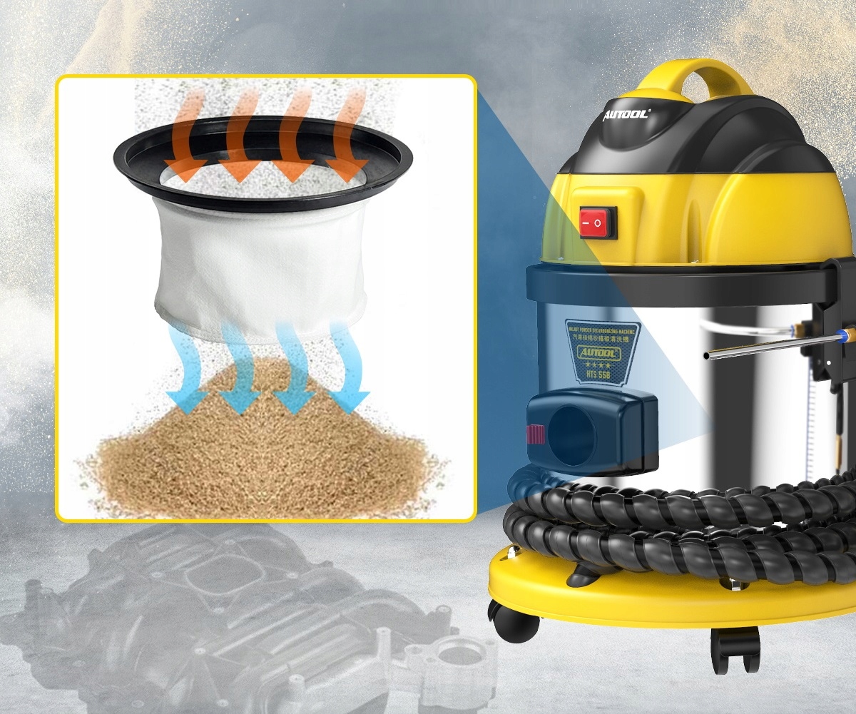 autool hts558 оснащен созданным пылевым фильтром, который эффективно отделяет извлеченный ореховой песок от угля, что обеспечивает повторное использование. Это решение не только повышает эффективность очистки, но также позволяет переработать материал, что делает процесс более экологическим