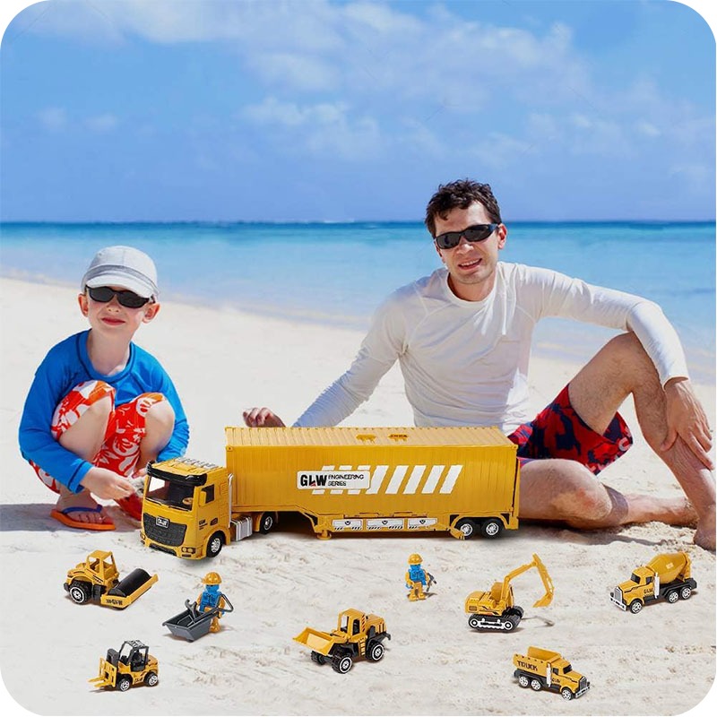 - Подвижные элементы транспортного средства. Все включенные транспортные средства, такие как экскаватор, погрузчик или самосвал, имеют движущиеся элементы, которые позволяют играть еще более творчески. Ребенок может перемещать, поднимать и транспортировать материалы, имитируя настоящую работу на стройке.